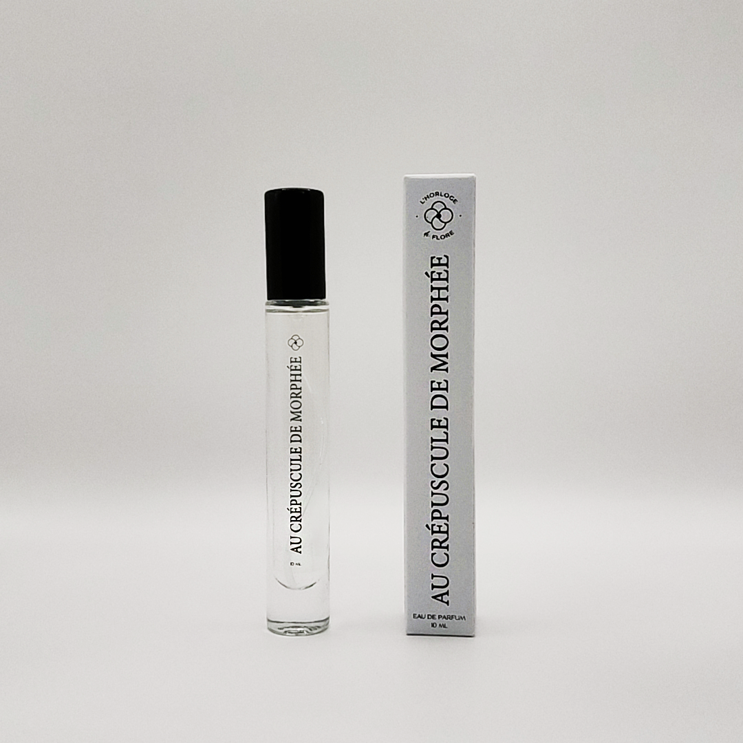 Au Crépuscule de Morphée perce le ciel nocturne avec élégance et simplicité. Entre ombre et lumière, l’Iris Etoilé s’illumine au contact du bois de santal qui s’enrobe d’une violette bonbon. Un appel charnel d’un baiser dans le cou, prémices d’une nuit sensuelle.